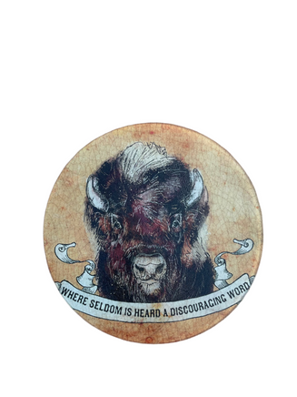 - Elevate your kitchen game with this all-in-one Round Glass Cutting Board/Charcuterie/Trivet! It'll have you saying, "Where Seldom is Heard a Discouraging Word" with its stylish Buffalo. Be ready to chop, slice, and serve in style--no matter what's on the menu!