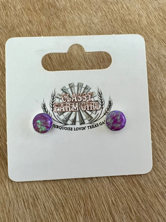 Purple Opal Round Stud Earrings