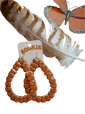 - Hand painted and pressed polymer clay earrings. Painted and stained the perfect distressed shade of bohemian