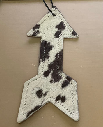 Variety of charm shapes, each featuring genuine leather on one side and cowhide (hair) on the other.