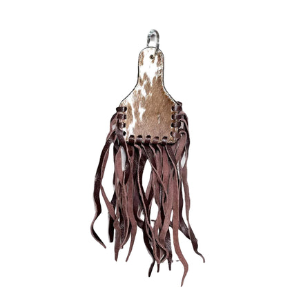 Cowhide Fringe Ear Tag Keychain