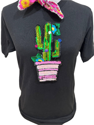 Handmade Sequin Cactus Pot on Unisex Black Crew