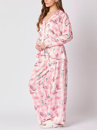 - 2-piece bow print pajama set is made of high-quality polyester, breathable and soft, skin-friendly and lightweight, comfortable to wear for spring, summer, fall, winter.
