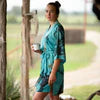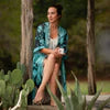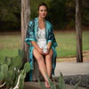 The Kingman Turquoise kimono robe, perfect for lounging around or getting ready in the morning. You can also throw it on with your favorite Cami, skinny jeans and some tall top boots for a night out. Whether you are going from your bed to grab some coffee, or covering up after a swim, this versatile piece is sure to turn some heads.