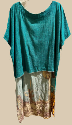 I Love Linen Sunrise Cactus Teal Hi-Lo Tunic