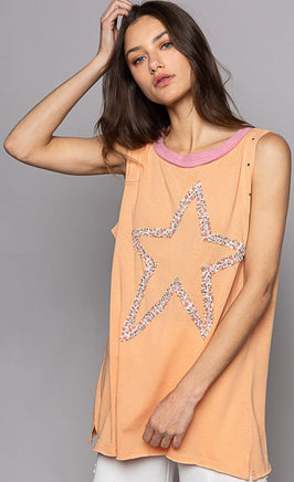 POL Round Neck Stud Floral Star Patch Tunic Top