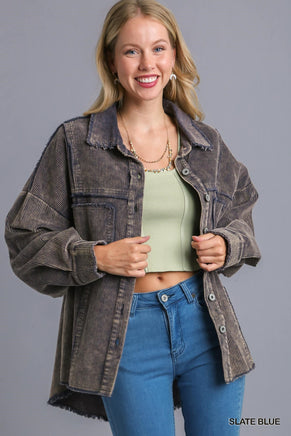 Umgee Stone Wash Chest Pocket Collar Button Down Jacket
