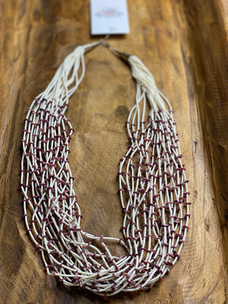 Ramona Bird 20 Strand Heishi Bead & Purple Spiny Necklace