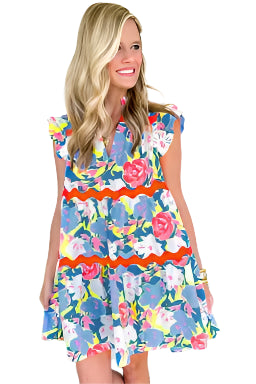 Floral Ric Rac Flutter Sleeve Dress