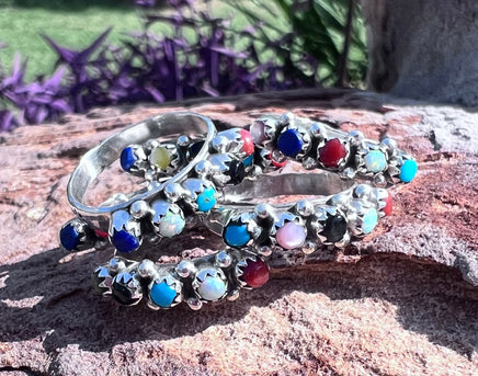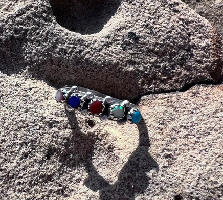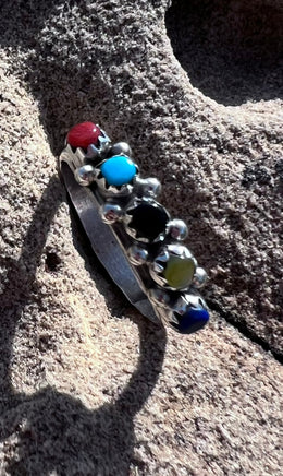 Carmichael Walena Multi 5 Stone Stamped Stacker SS Ring